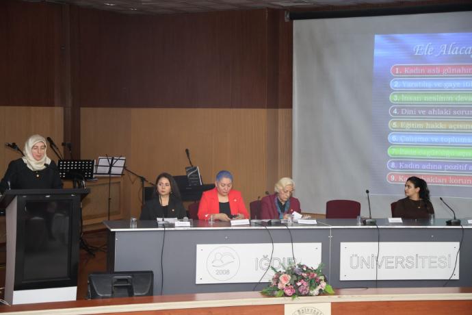 Açılış konuşmalarının ardından panele geçildi. Moderatörlüğünü Prof. Dr. Neşide Yıldırım'ın üstlendiği panelde; Prof. Dr. Özlem Karabulutlu, Hatice Köseoğlu, Ayça Bağcıtek ve Ayşegül Korhan tarafından kadına yönelik şiddetin psikolojik, sosyal ve toplumsal boyutları üzerine sunumlar yapıldı.